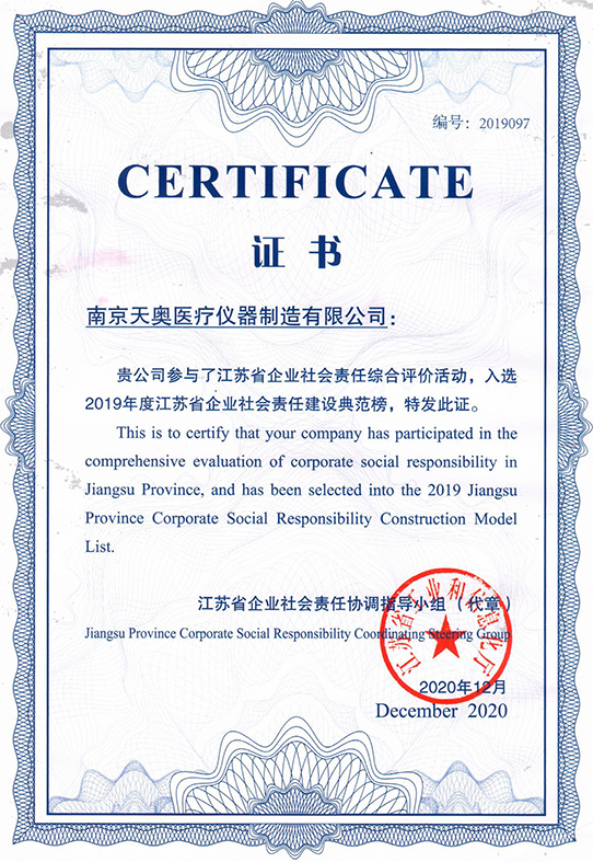 在2020年武汉新冠疫情期间,天奥紧急加班生产,为武汉火神山、雷神山医院累计交付了3491件医用护理及华体会(中国)设备,为战胜疫情贡献了天奥力量。3月底天奥名列省级新冠肺炎疫情重点保障企业名单,同时获得了2020年度南京市新冠肺炎疫情防控专利实施计划项目补助。